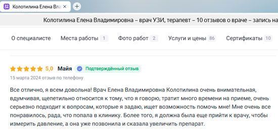 Отзывы о наших специалистах