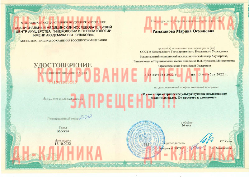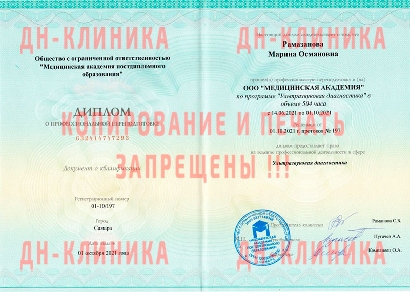 • 2021 г. – Специализация по ультразвуковой диагностике.
