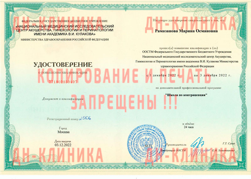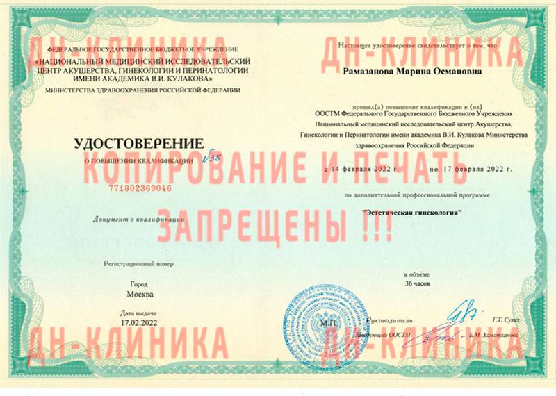 • 2022 г. - Сертификационный цикл «Эстетическая гинекология».