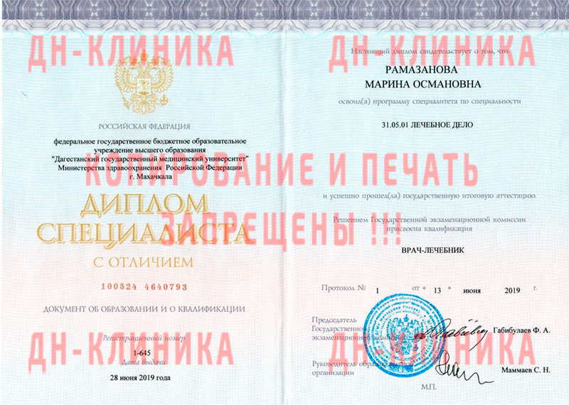 • 2019 г. - С отличием окончила Дагестанский государственный медицинский университет, специальность «Лечебное дело».