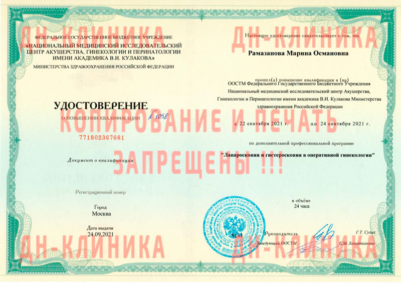 • 2020 г. - Симуляционно-тренинговый курс «Лапароскопия и гистрскопия в оперативной гинекологии».
