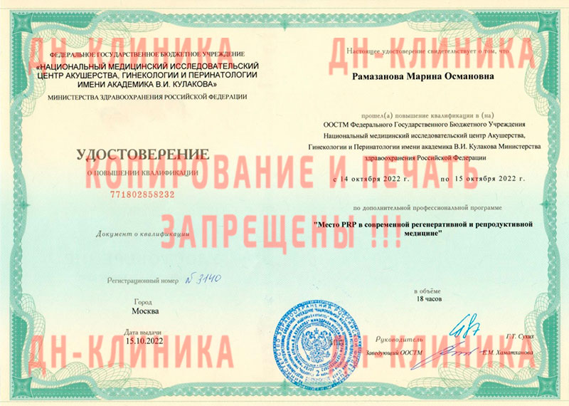 • 2022 г. – Сертификационный цикл «Место PRP в современной регенеративной и репродуктивной медицине».