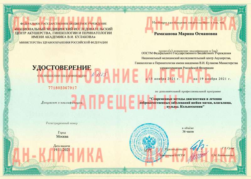• 2021 г.- «Современные методы диагностики и лечения доброкачественых заболеваний шейки матки, вульвы и ануса. Кольпоскопия».
